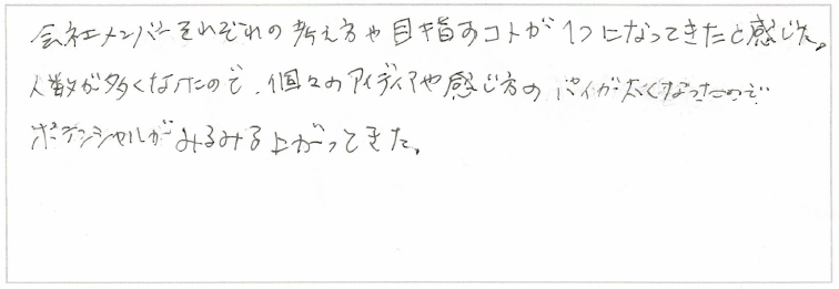 もしかしたら、ブランディング研修は、普段なかなか言えない想いを共有できる良いコミュニケーションの場にもなっているのかな?と感じて嬉しくなりました。